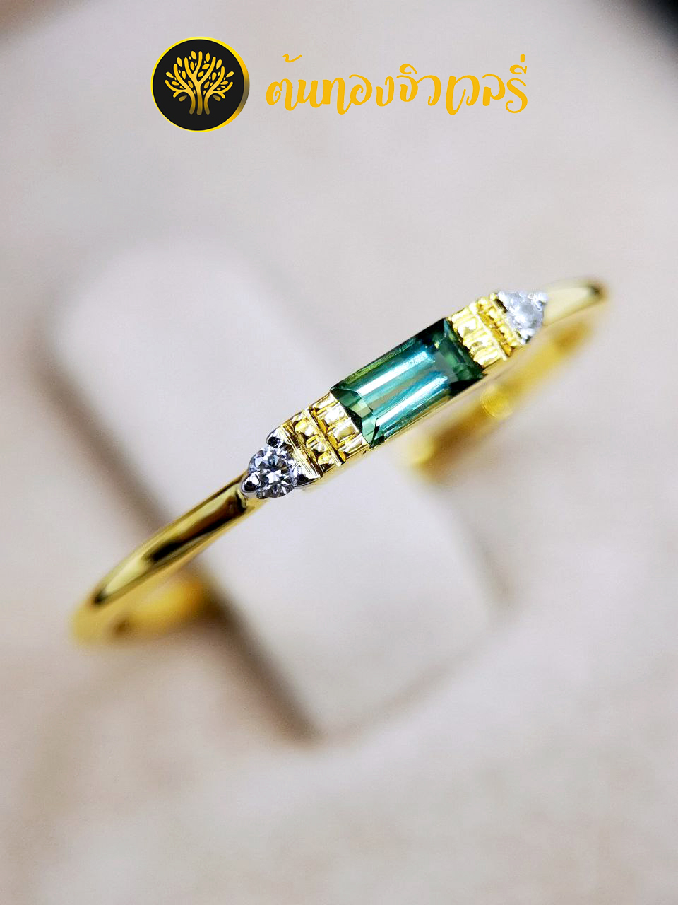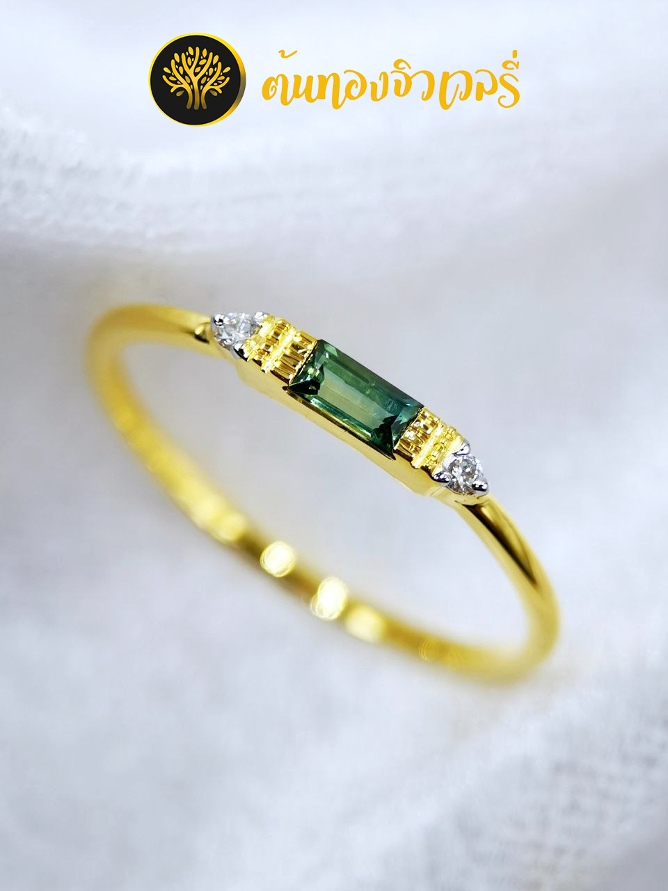 แหวนพลอยเขียวส่องทรงสี่เหลี่ยม