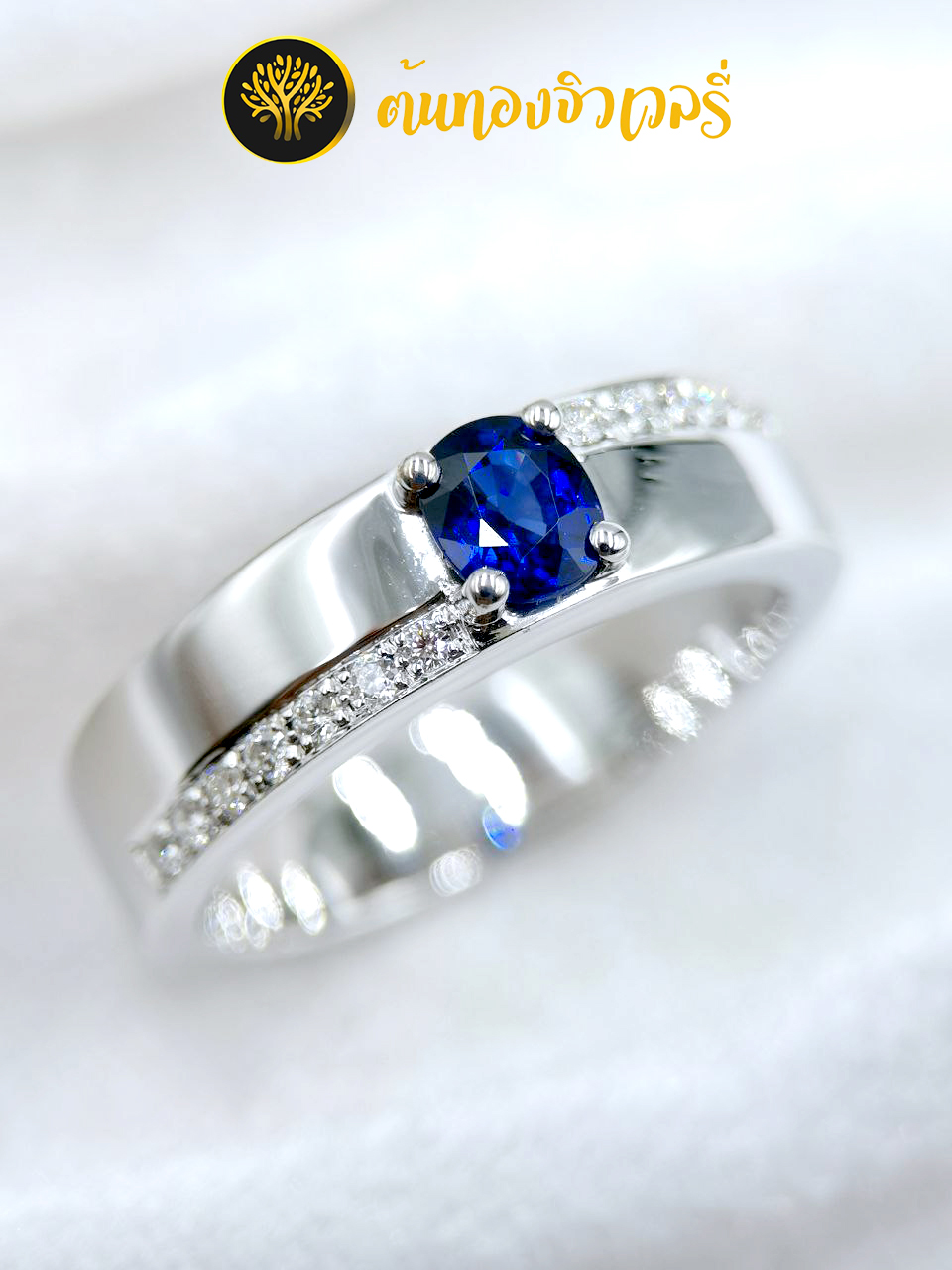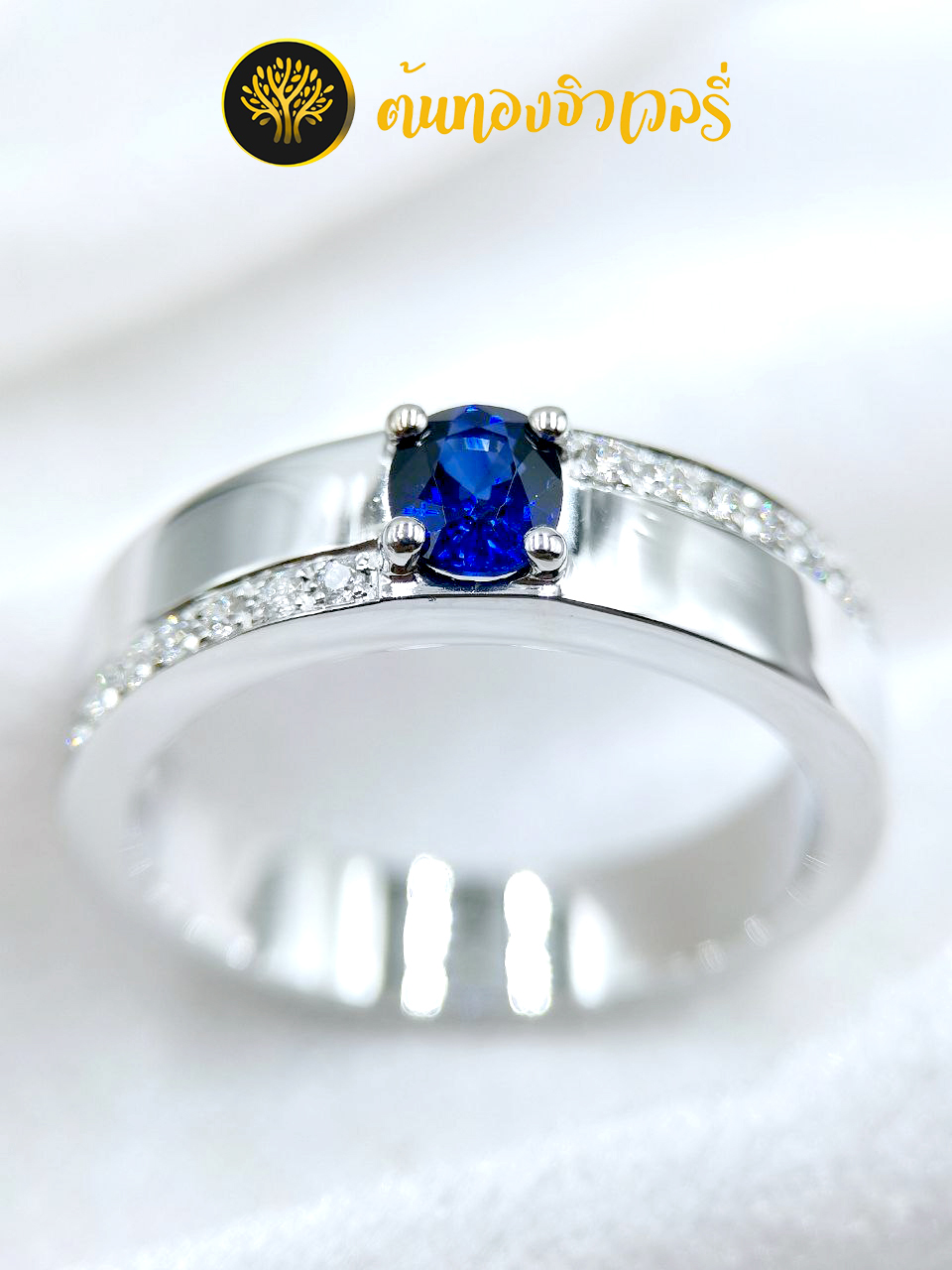 แหวนเงินแท้ชุบทองคำขาว ฝังด้วยพลอยไพลิน