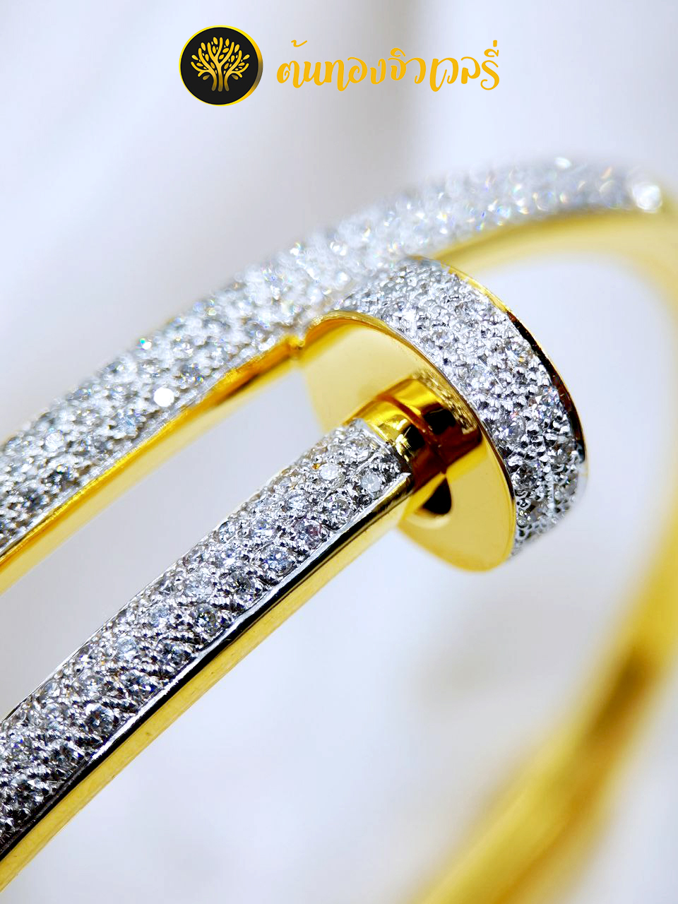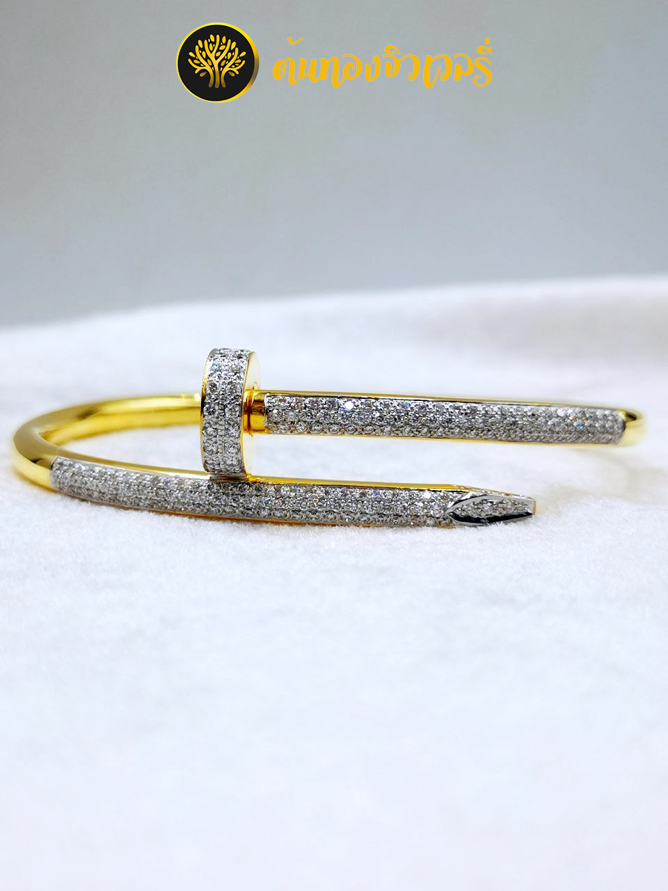 กำไลตะปูฝังเพชรงานทองคำแท้