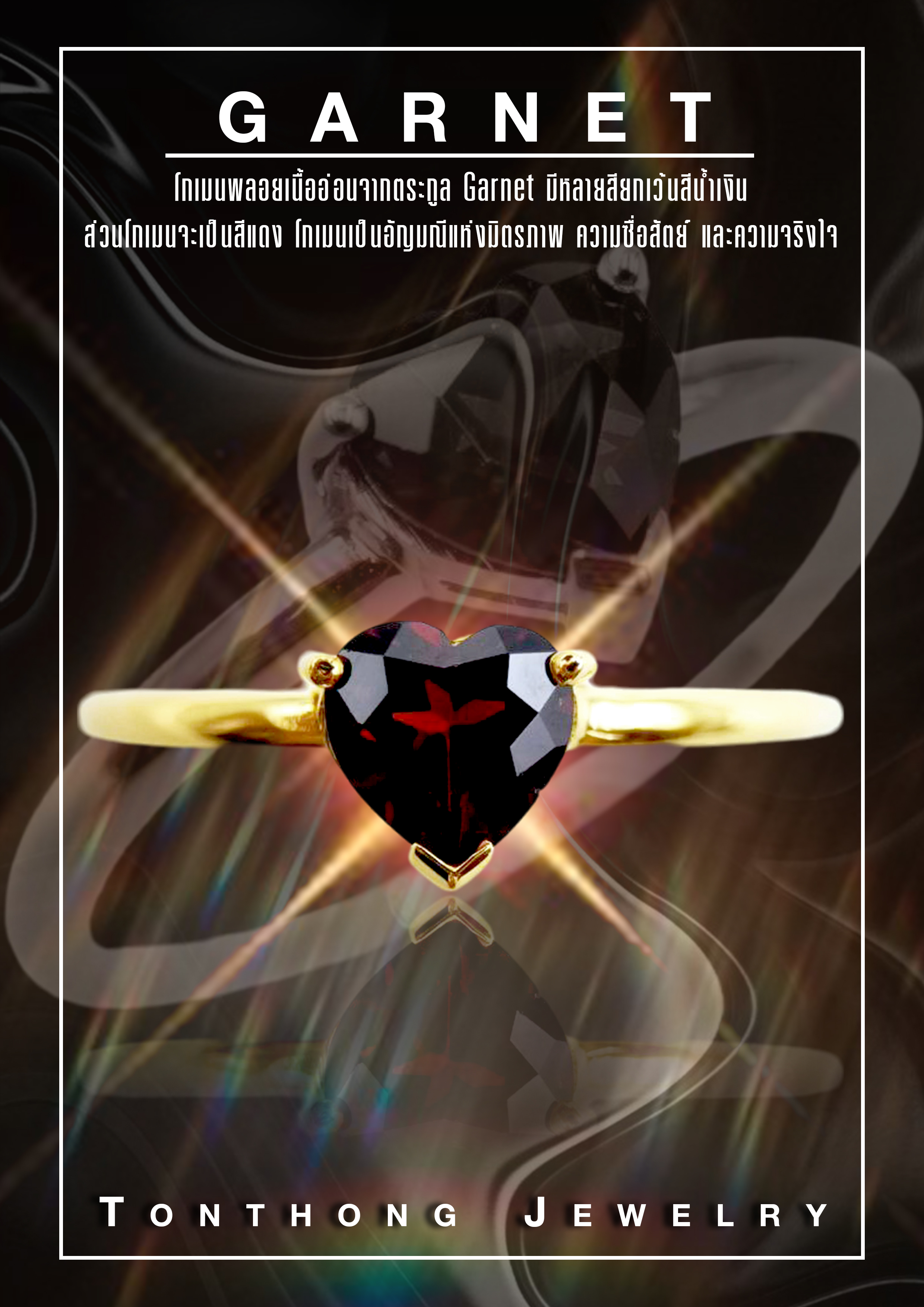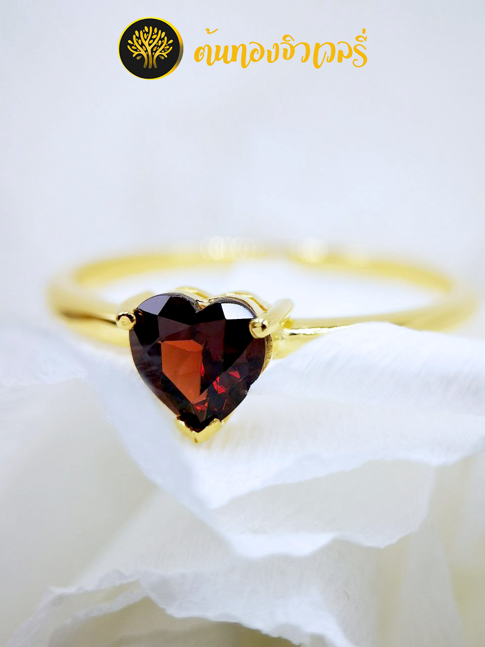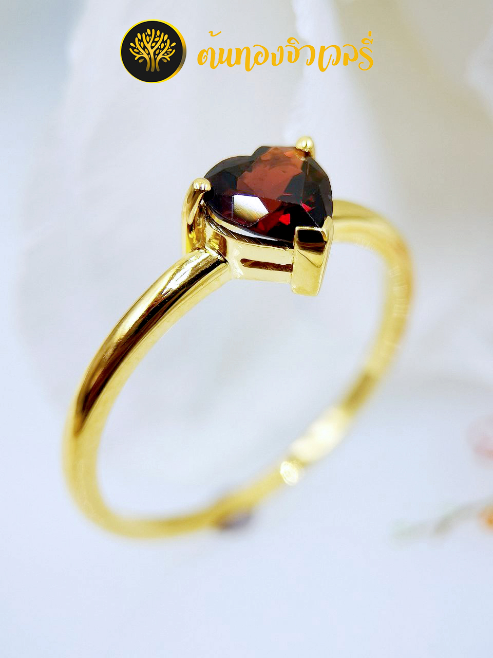 แหวนพลอยโกเมนเม็ดเดี่ยว สไตล์มินิมอล งานทองคำแท้