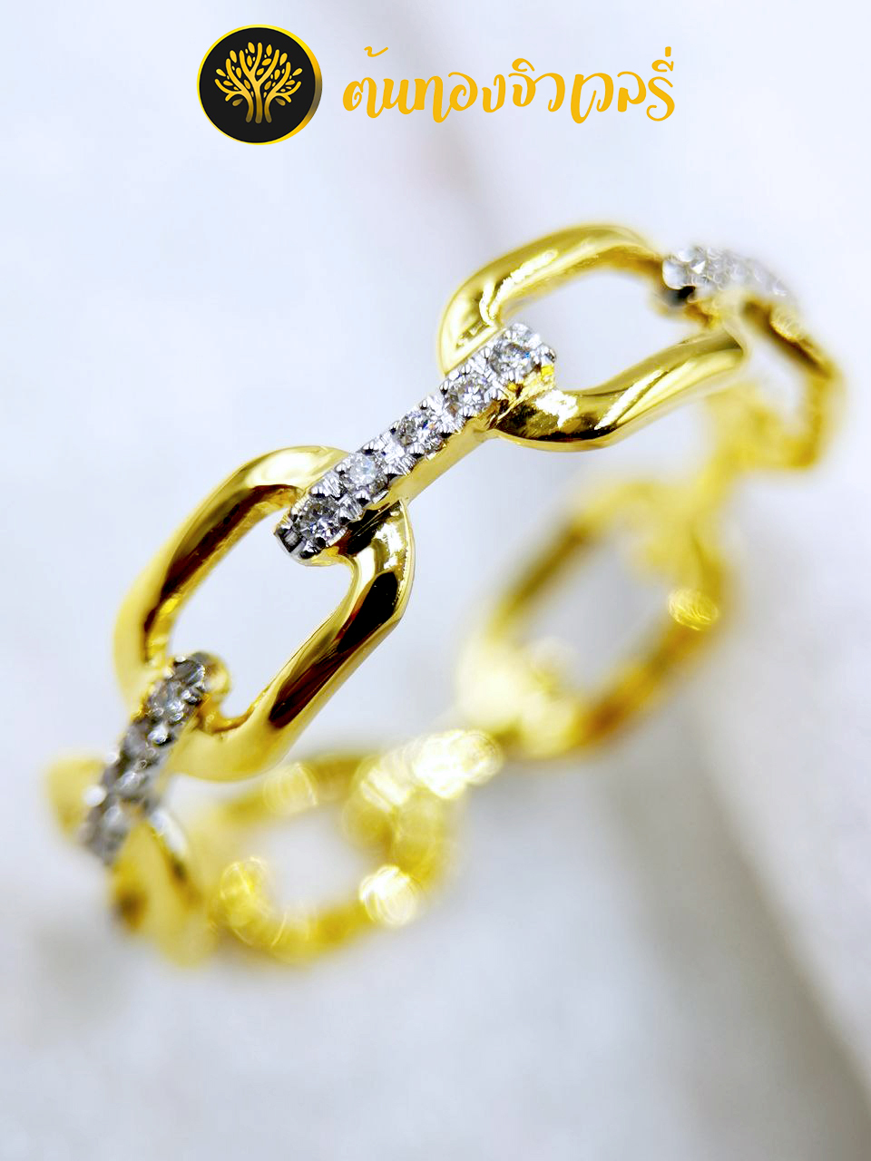 แหวนทองคำแท้ แหวนโซ่ฝังเพชร สไตล์มินิมอลน่ารักๆ เรียบง่ายเหมาะกับทุกเพศเลยครับ