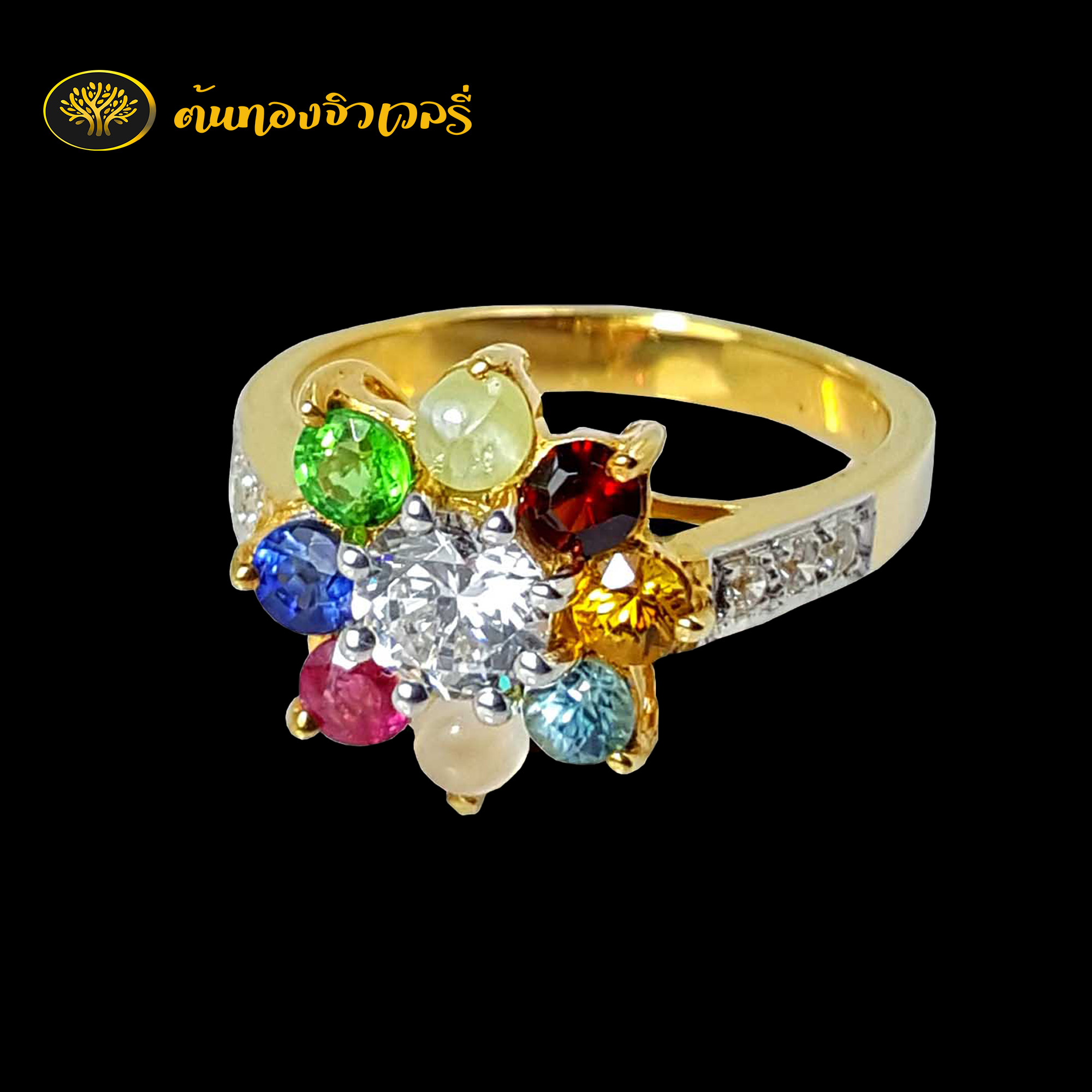 แหวนนพเก้าเพิ่มพูล แหวนนพเก้าที่ออกแบบให้เหมือนดอก ไม้ ทองคำ 1 สลึง ประดับยอดมงคลทั้ง 9 ชนิด